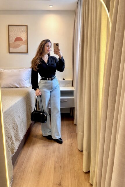 Calça pantalona na cor tradicional — um clássico que nunca sai de moda. Com caimento fluido e cintura alta, valoriza a silhueta e garante elegância em qualquer ocasião. Disponível do 36 ao 42.
