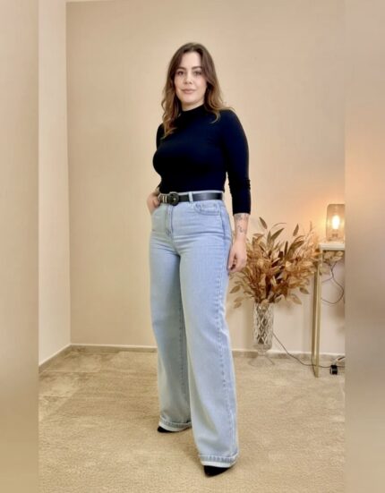 Calça Wide Leg 100% Algodão – Lavagem Clara