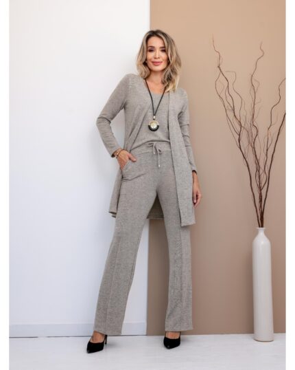 Estilo e conforto se unem no Conjunto Trio Chic, um look completo que transita com facilidade entre o casual e o sofisticado. Ideal para quem busca praticidade sem abrir mão de um visual alinhado, ele é feito em lanzinha macia com caimento leve e toque aconchegante.