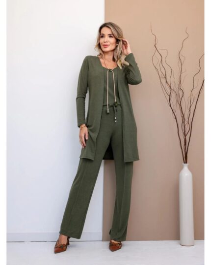Estilo e conforto se unem no Conjunto Trio Chic, um look completo que transita com facilidade entre o casual e o sofisticado. Ideal para quem busca praticidade sem abrir mão de um visual alinhado, ele é feito em lanzinha macia com caimento leve e toque aconchegante.