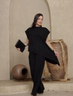 O conjunto perfeito para quem busca elegância sem abrir mão do conforto. Confeccionado em tecido Ana Ruga, possui textura moderna e caimento impecável que valoriza a silhueta com muita leveza.