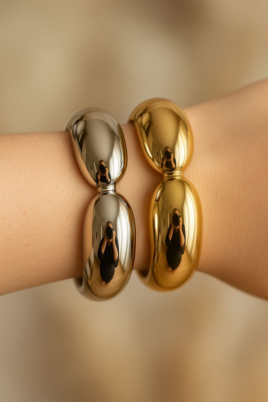 Eleve seu estilo com sofisticação e personalidade com as pulseiras Elegance Duo. Com design moderno e acabamento espelhado de alto brilho, essas peças são perfeitas para quem valoriza o luxo minimalista.